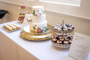 We originally thought of multiple cakes. Here are plenty of options for us to ponder. Whether we do the full cake, the couple’s cake, custom cookies, cupcakes, and assorted sweets, can’t go wrong.